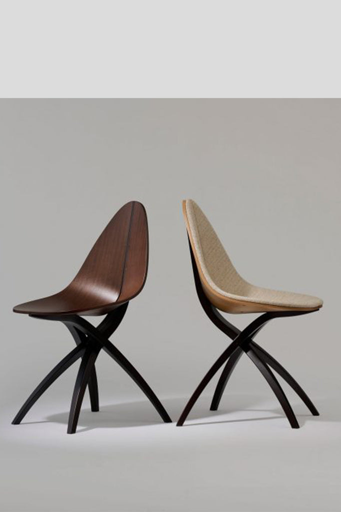 自然の成果物からの着想を得意とするGamFratesiよるデザインで、plywoodの成形合板技術を用い有機的に仕上げられたチェアです。流れる曲線と彫刻的な美しさが交わり、静けさと共にウォルナット本来の魅力が贅沢にご堪能頂けます。