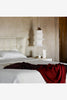 ブルーノ・ムナーリのプロダクトデザインの代表作ともいわれている、天井吊り下げランプ。このシェードに用いられているのはナイロン製のストッキング素材です。様々な大きさの金属製リングの重みで、ストッキングは自然な伸縮を与えられ、またその伸縮を通した光は柔らかなモアレを放ちます。吊すと165cmになるこのランプシェードも、床に落とせばわずか数cmの厚みになるのも、素材が持つ特性によりうまれた構造なのです。