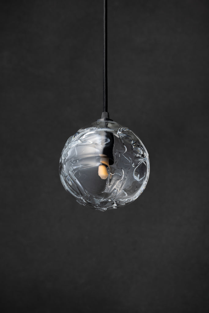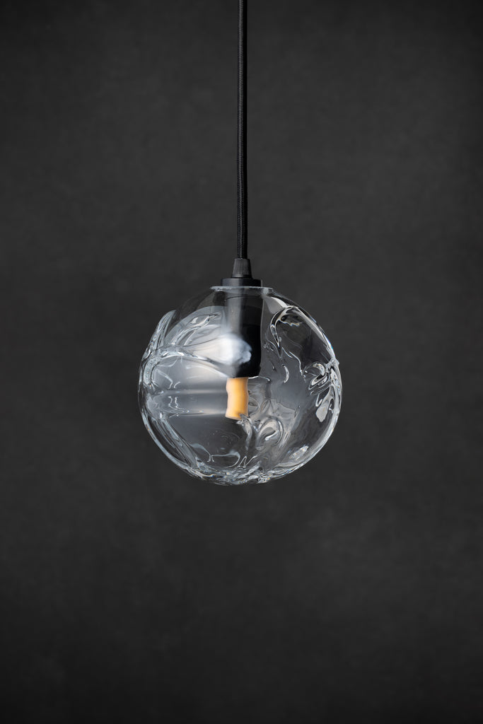 ガラスシェードはマウスブローで一点ずつ制作しております。そのため厚みやサイズに個体差があります。また、制作過程で防ぐことのできない細かな気泡やシワ、引っかき傷のような線が入ることがありますが、ハンドメイドならではの特徴としてご了承ください。