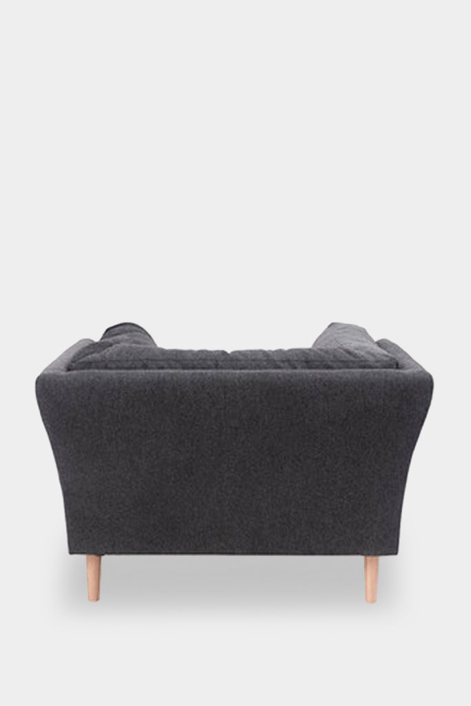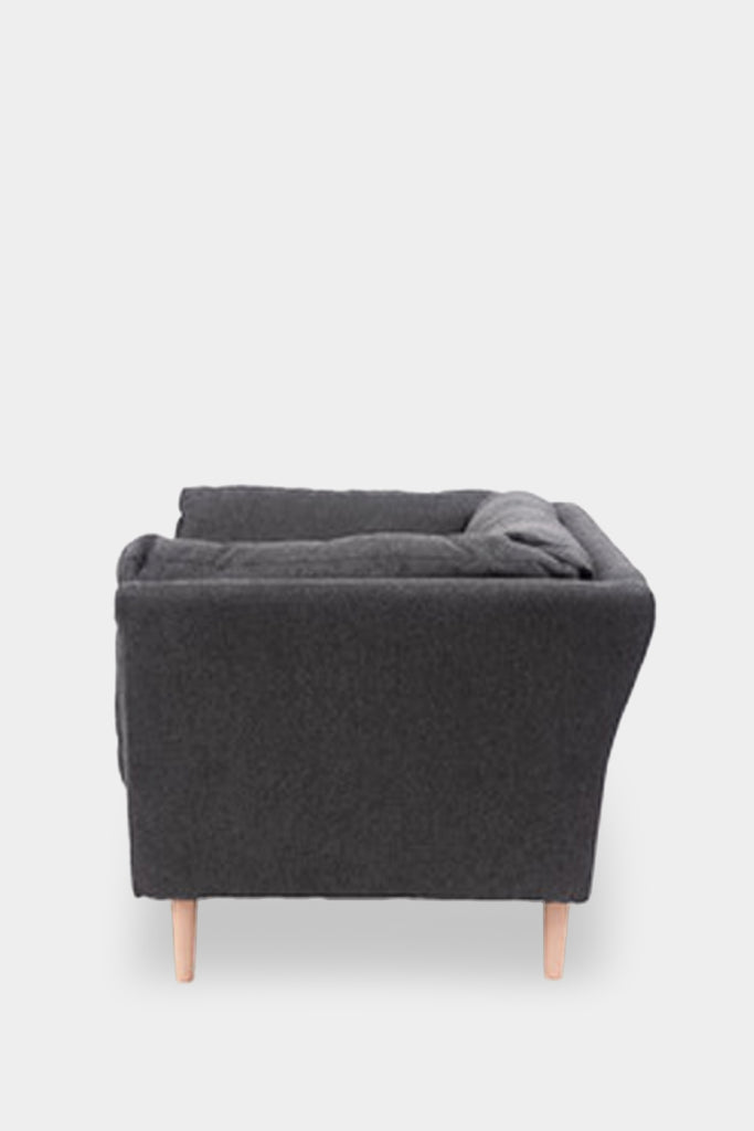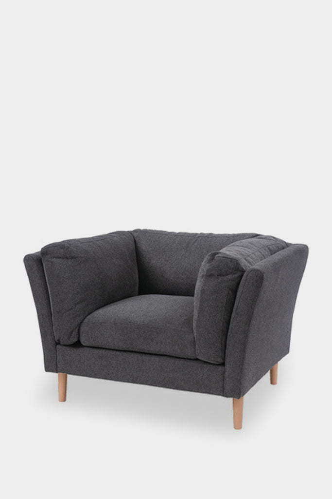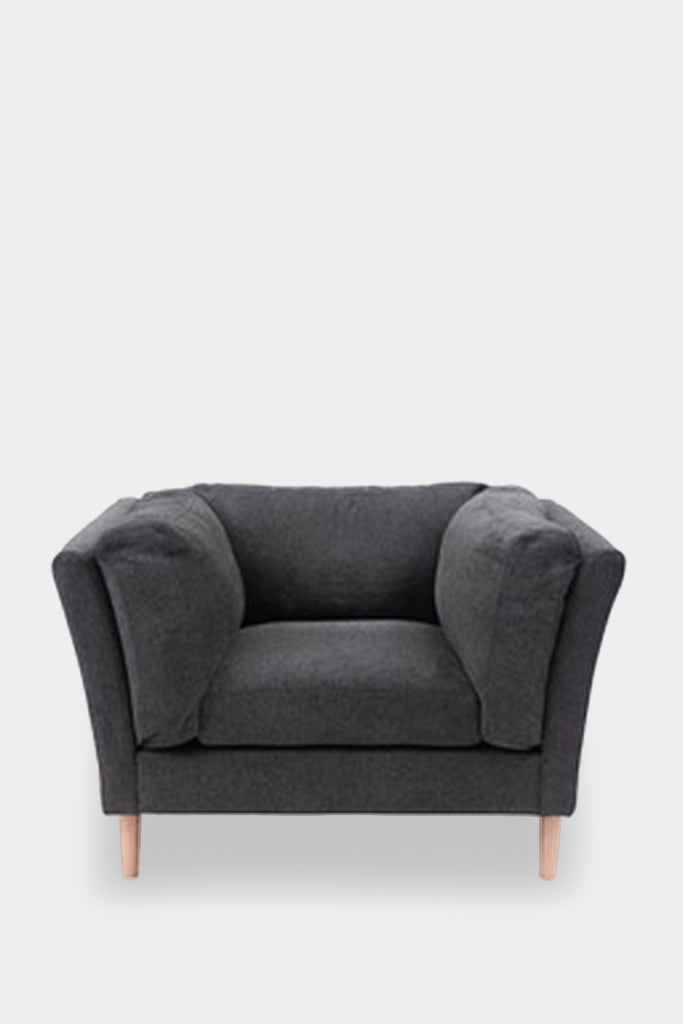 緩やかに外に開くラインが、空間に柔らかな美しさを添えます。Sバネと厚いクッションによる適度な弾力性が、長時間座っても快適な座り心地を実現。背面・肘掛けのソフトなクッションと天然木脚で寛ぎを上質に。傷防止接地シール付きで、脚の取り付けも簡単です