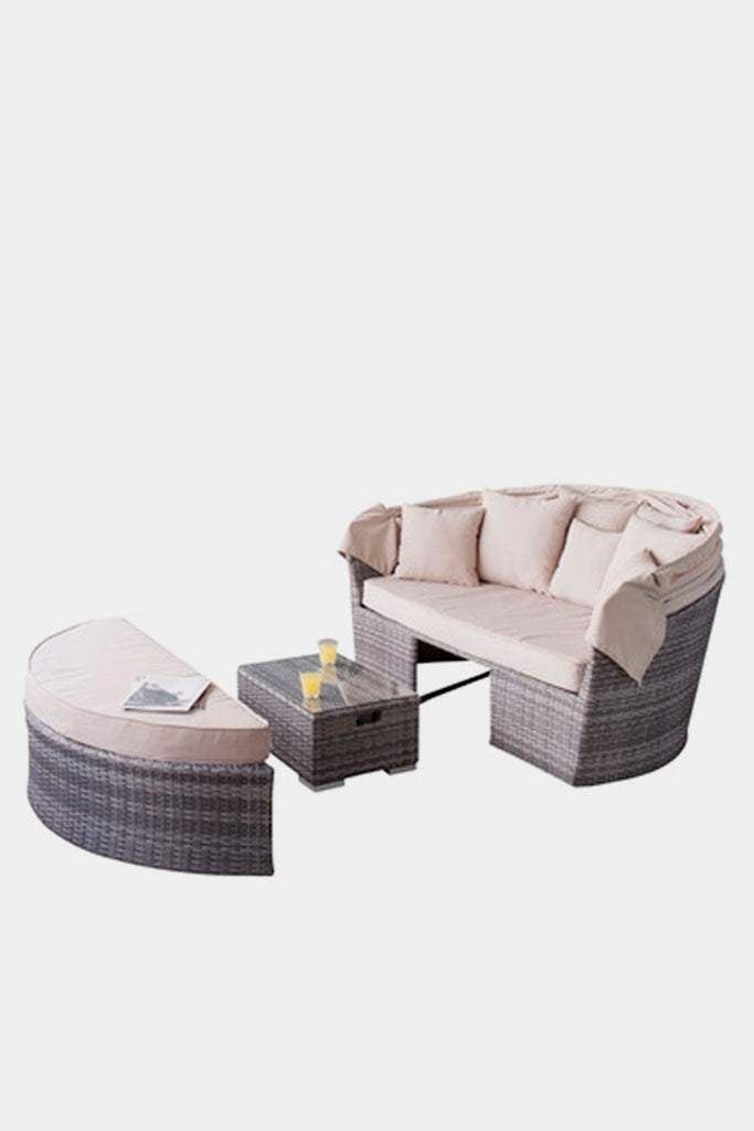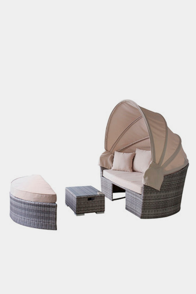 *キャノピー付き2Pソファ、ベンチ、ローテーブル、クッションのセットになります。