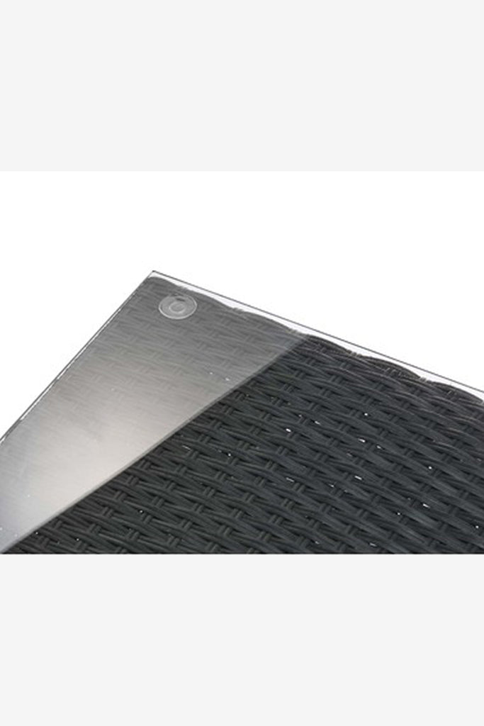 material: steel (powder coated), polyethylene, polyester, 5mm tempered glass