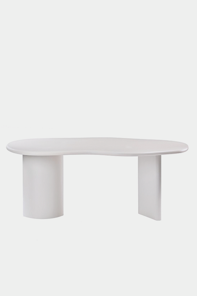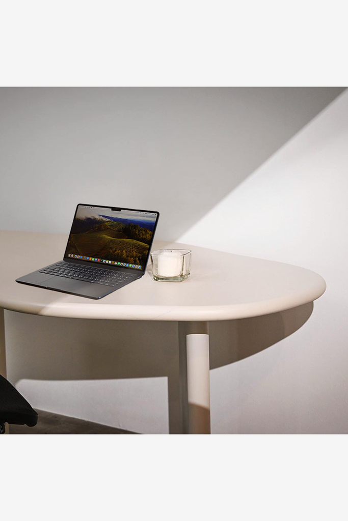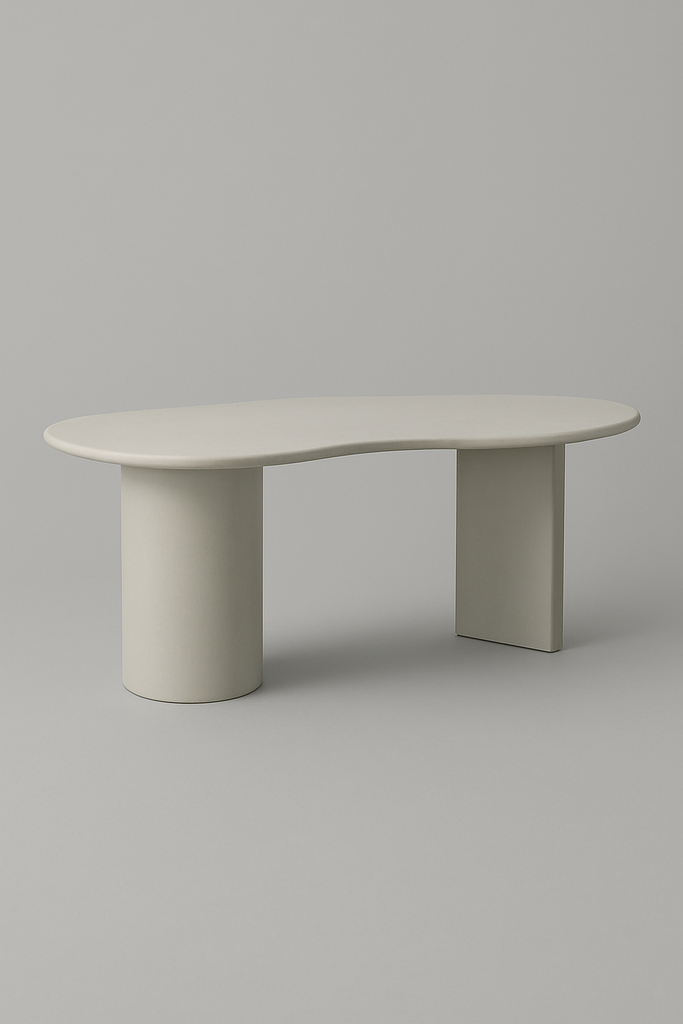 アシンメトリーなフォルムは、視覚的な軽やかさと、実質的な自由度を空間にもたらします。この大胆な非対称性は、既存の固定観念から空間を解き放ち、広がりと動きを創り出します。