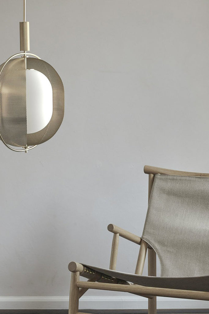 ランプの半分に穴の空いている金属シェードを使用することで、違った光の広がり方も演出します。