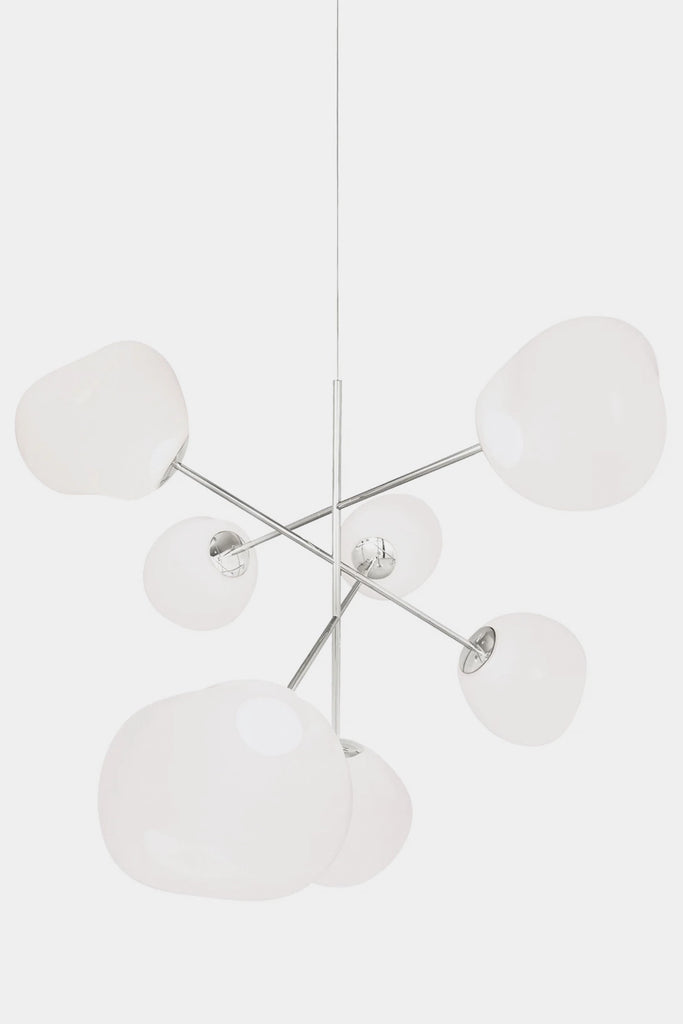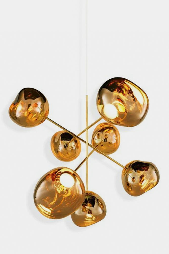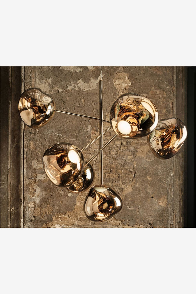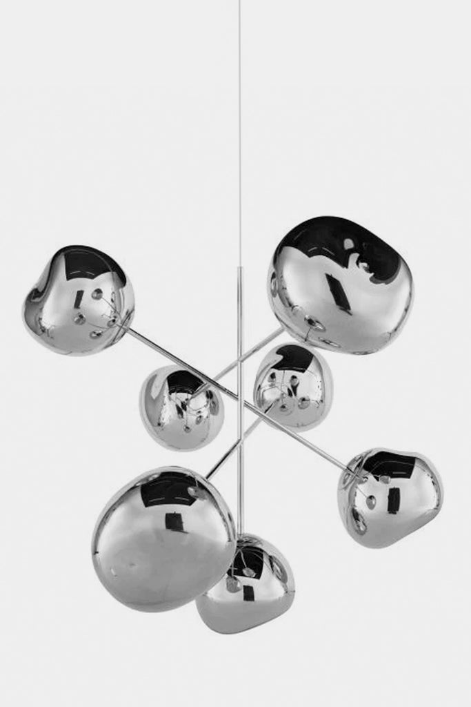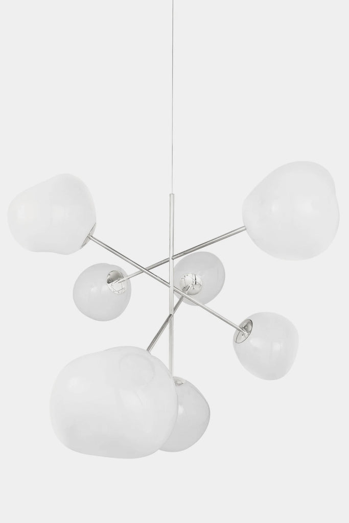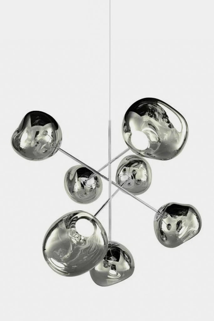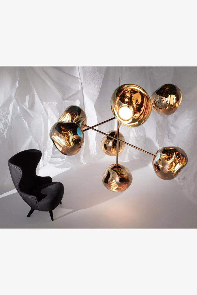 MELTシリーズに新たに加わったMELT CHANDELIER(メルト・シャンデリア)。MELTのシェードが1本の灯具に組み合わされた、新たな表情を見せるシャンデリアとなっています。