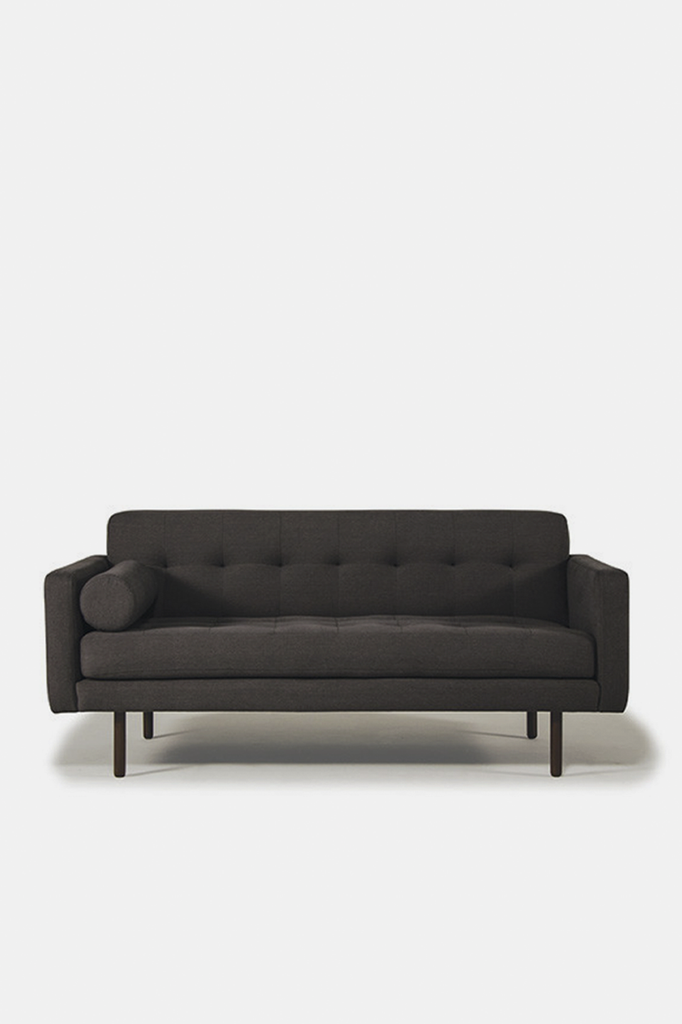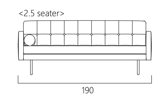座面・背もたれ共に二層構造のウレタンを採用、座面には10cm厚の35kg/㎥ウレタンの上に、55kg/㎥の高密度ウレタンを2.5cm重ねた二重構造のしっかりとした座り心地です。広々とした奥行きで、横になって寛ぐにも充分なスペースを実現しています。ソファは同色のラウンドクッションが1個標準セットです。