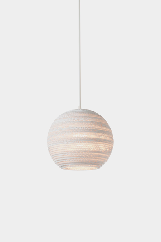 リサイクルカードボードから作り出されたGraypantsのフラッグシップスクラップライトシリーズは、あらゆる空間に暖かく機能的な光を提供します。