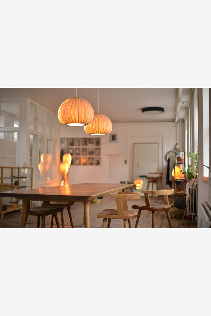 デンマーク人デザイナー(1970年生まれ)。革製の服飾デザイナーとしてキャリアをスタートさせた後、2004年から木や紙などのさまざまな素材の特徴をいかした照明のデザインを始め、自身の名をブランドとしたTom Rossauを設立。その後ショップ兼工房を2012年にコペンハーゲン中心部にオープンさせました。現在ではヨーロッパを中心に世界各地のインテリアショップで販売され、人気を得ています。